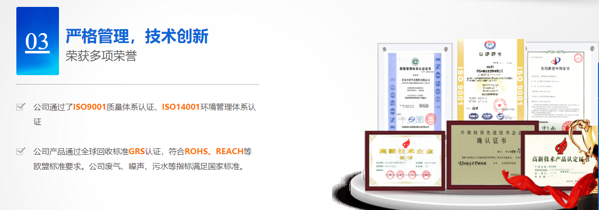 公司擁有專業(yè)的研發(fā)團(tuán)隊,根據(jù)客戶要求定制開發(fā),快速提供樣料試樣,滿足客戶新產(chǎn)品開發(fā)要求。專業(yè)的檢測人員對每一批產(chǎn)品進(jìn)行全性能檢測,產(chǎn)品出廠時都會提供性能檢測報告,質(zhì)量好,有保障! 可提供無鹵證書、UL黃卡、氧指數(shù)、煙密度、灼熱絲證書等。公司通過了ISO9001質(zhì)量管理體系、ISO14001環(huán)境管理體系和ISO45001職業(yè)健康安全體系,全球回收標(biāo)準(zhǔn)GRS認(rèn)證。