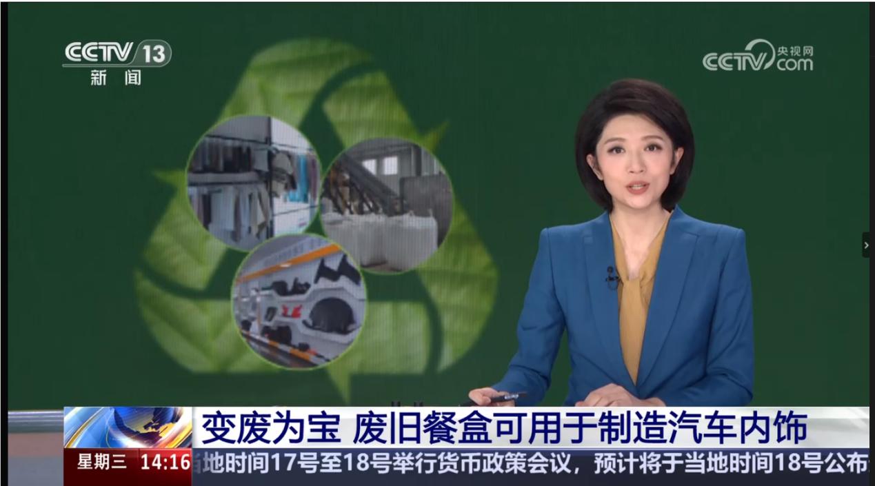 9月18日下午兩點(diǎn),CCTV13新聞?lì)l道播放了長達(dá)10分鐘的再生塑料相關(guān)新聞,報(bào)道了我國在廢舊塑料回收、廢舊餐盒做成速干衣、廢舊餐盒做成汽車配件方面的高值化利用。